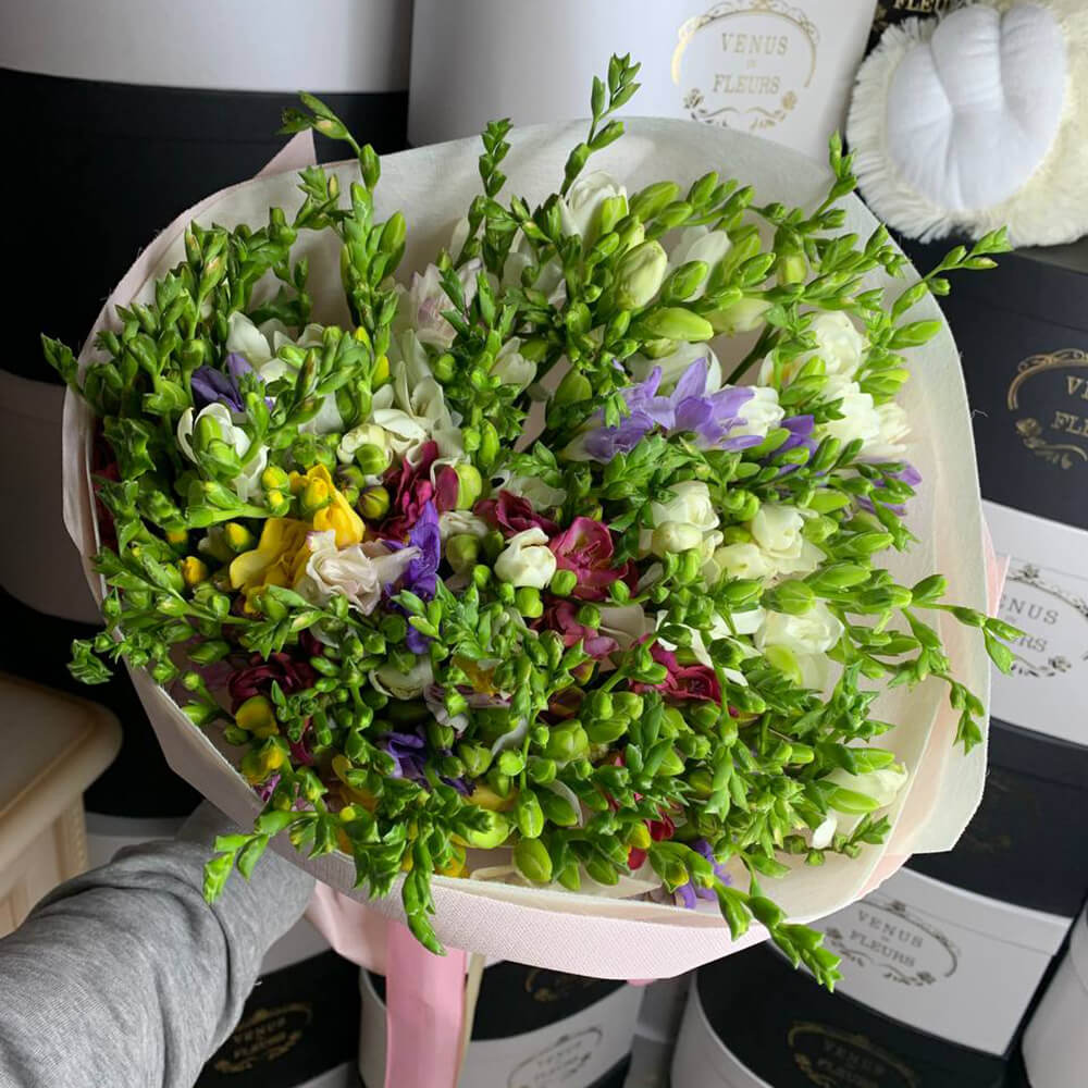 Неклассический букет из необычных цветов! Цветы фрезии очень нежные, хрупкие и милые. Передайте свои самые искренние чувства при помощи этого букета.