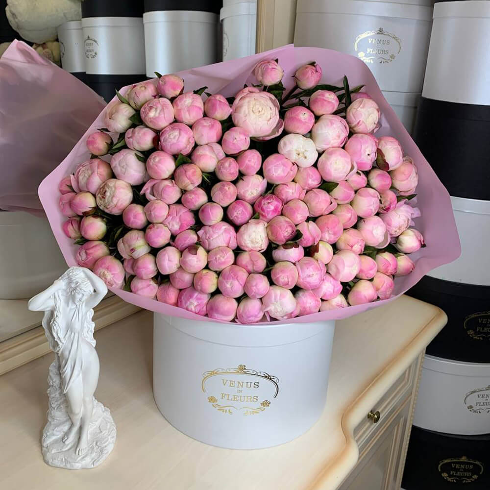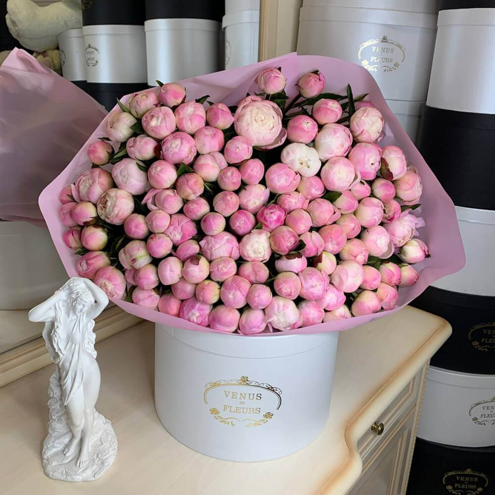 101 пион не сможет оставить ее равнодушной, букет надолго останется в памяти, подарит яркие положительные эмоции.
