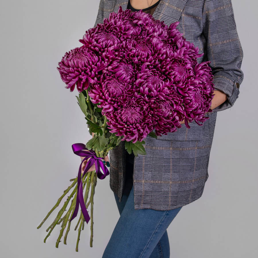 Нежный и ароматный букет хризантем будет прекрасным подарком вашей второй половинке, она будет в восторге, увидев такое чудо в живую.