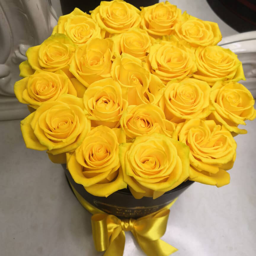 • черная коробка ручной работы, атласные ленты, флористическая губка