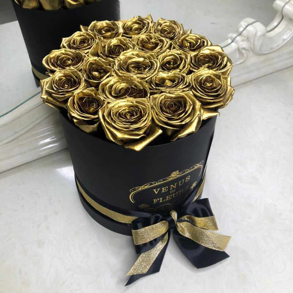 • черная коробка ручной работы, атласные ленты, флористическая губка