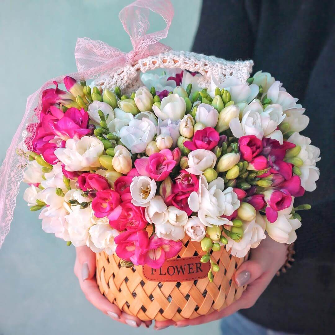 Неклассический букет из необычных цветов! Цветы фрезии очень нежные, хрупкие и милые. Передайте свои самые искренние чувства при помощи этого букета.