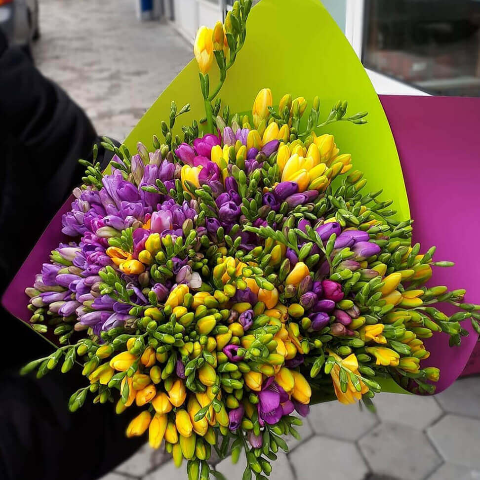 Неклассический букет из необычных цветов! Цветы фрезии очень нежные, хрупкие и милые. Передайте свои самые искренние чувства при помощи этого букета.