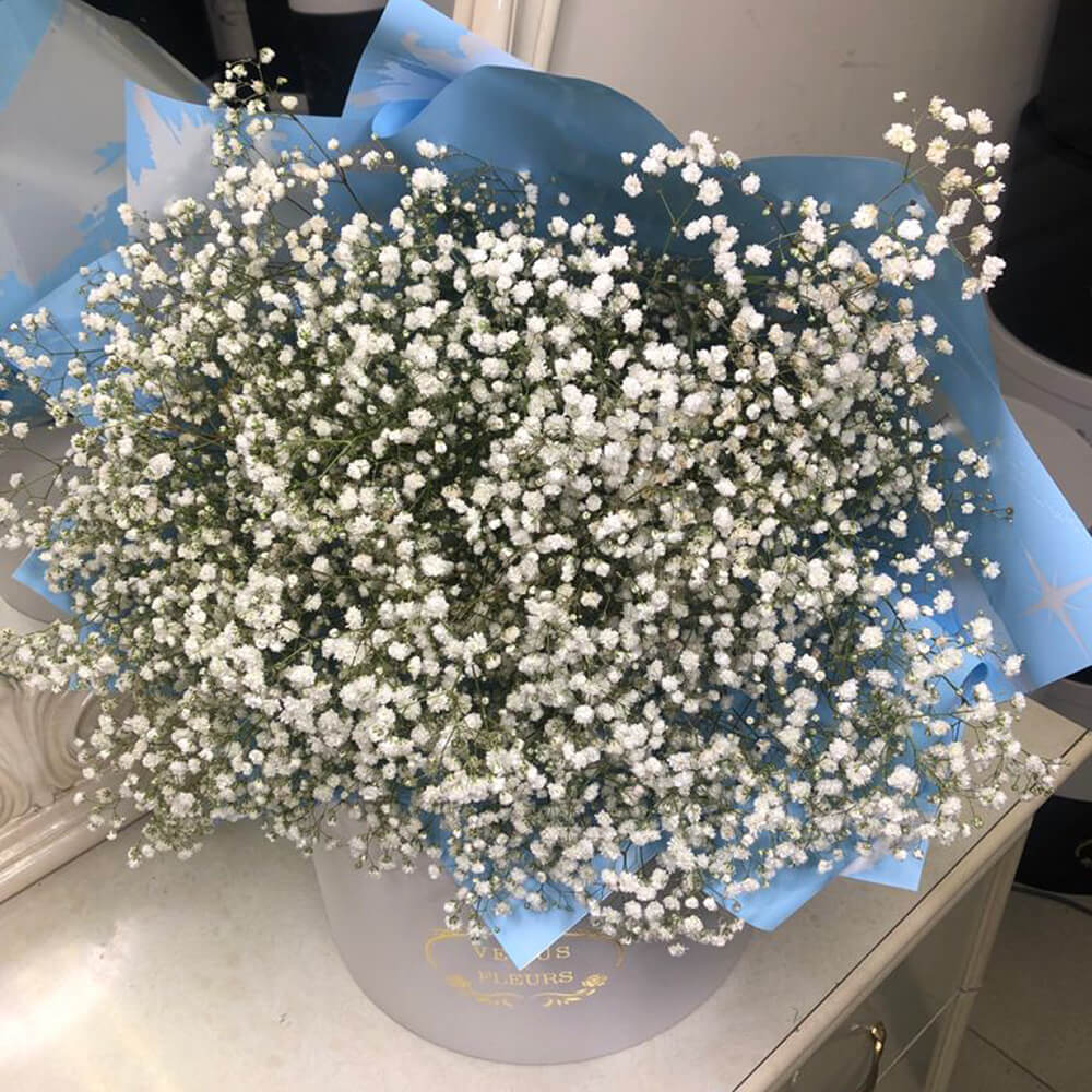 Гипсофилы не смогут оставить ее равнодушной, букет надолго останется в памяти, подарит яркие положительные эмоции.