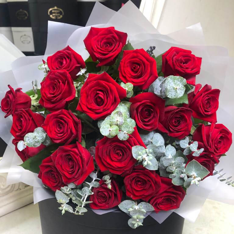• 25 роз, эвкалипт