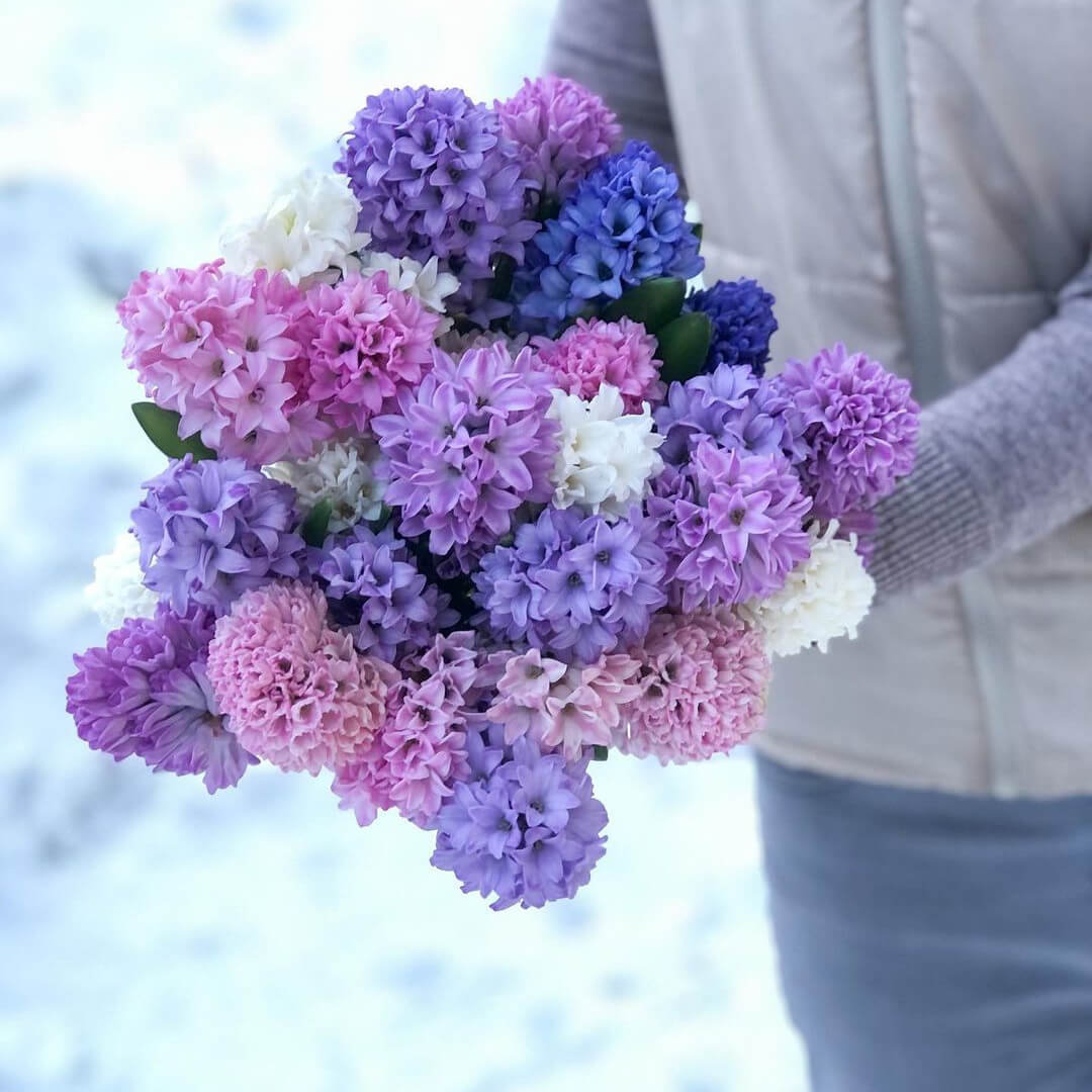 Пышные, яркие и красивые гиацинты образуют прекрасный букет.