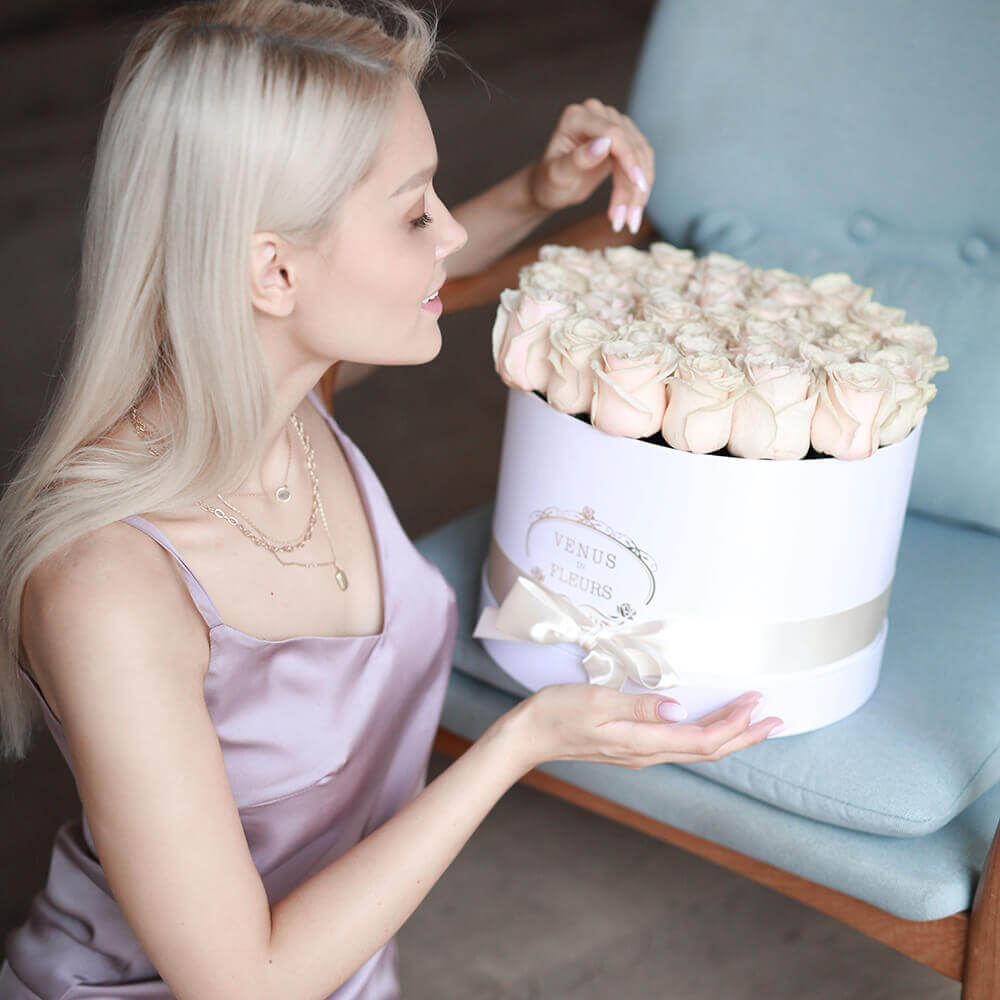 Розы в шляпной коробке всегда останутся классикой и альтернативой букетам.