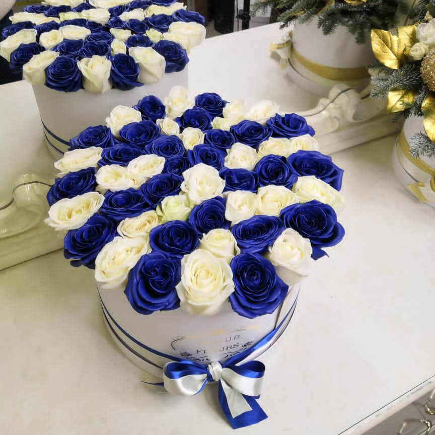 • белая коробка ручной работы, атласные ленты, флористическая губка