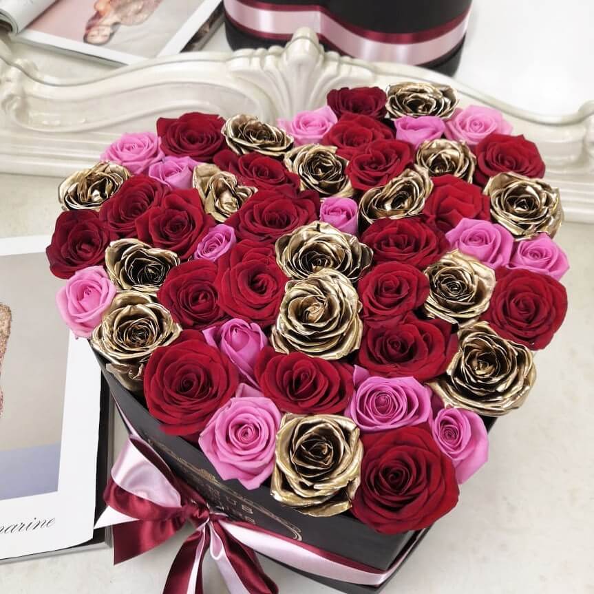 • черная коробка сердце ручной работы, атласные ленты, флористическая губка