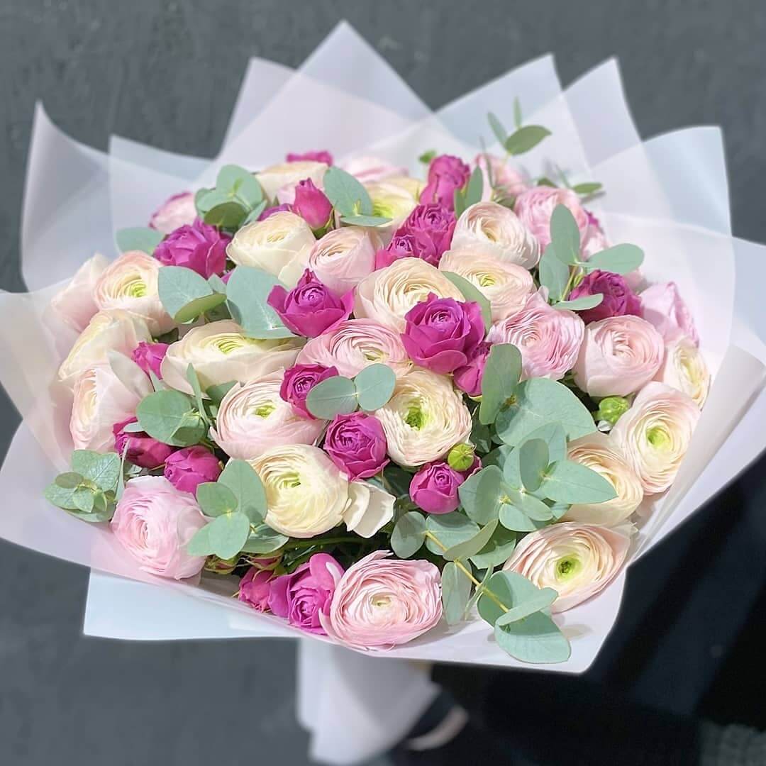 51 ранункулюс не сможет оставить ее равнодушной, букет надолго останется в памяти, подарит яркие положительные эмоции.