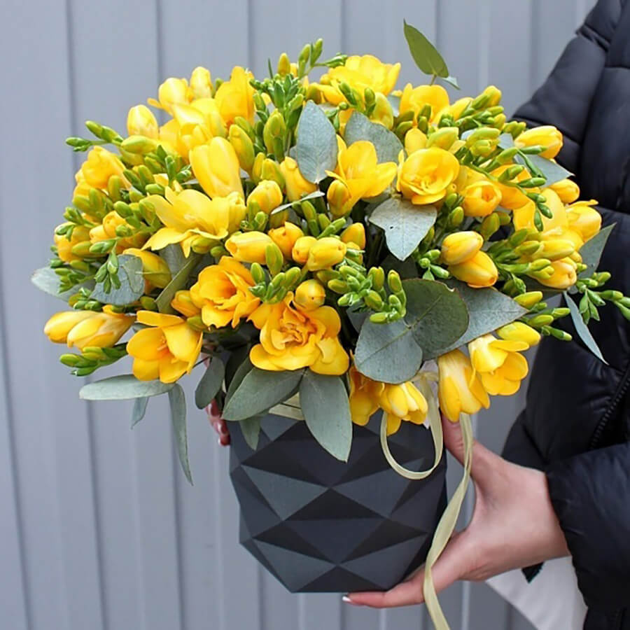Неклассический букет из необычных цветов! Цветы фрезии очень нежные, хрупкие и милые. Передайте свои самые искренние чувства при помощи этого букета.