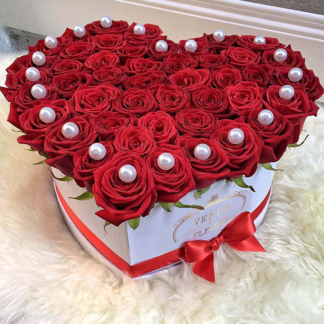 • белая коробка сердце ручной работы, атласные ленты, флористическая губка