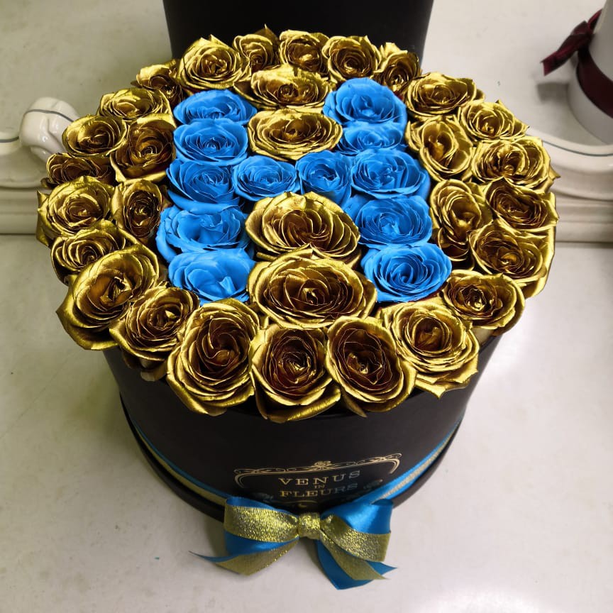 • черная коробка ручной работы, атласные ленты, флористическая губка