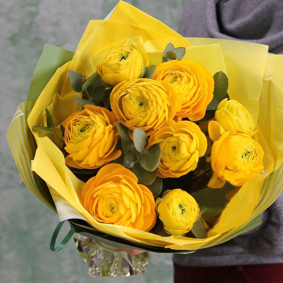 9 ранункулюсов не смогут оставить ее равнодушной, букет надолго останется в памяти, подарит яркие положительные эмоции.