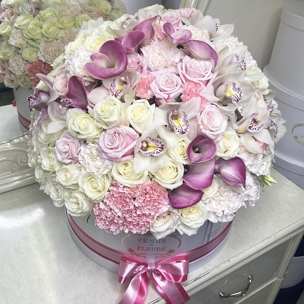 Букеты в шляпной коробке навсегда останутся классикой и альтернативой другим букетам.