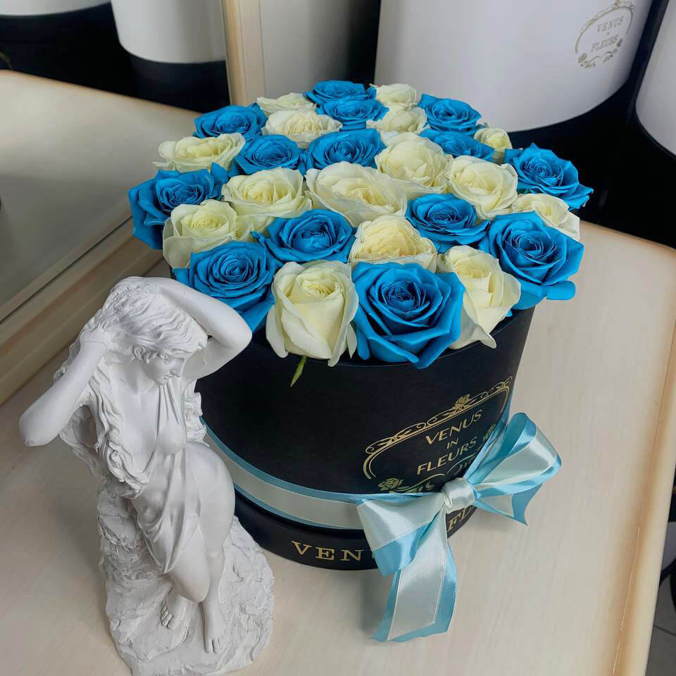Букет из этих необычных голубых и серебряных роз является эксклюзивным за всю историю флористики. Ваша вторая половинка будет в восторге, увидев такое чудо вживую.