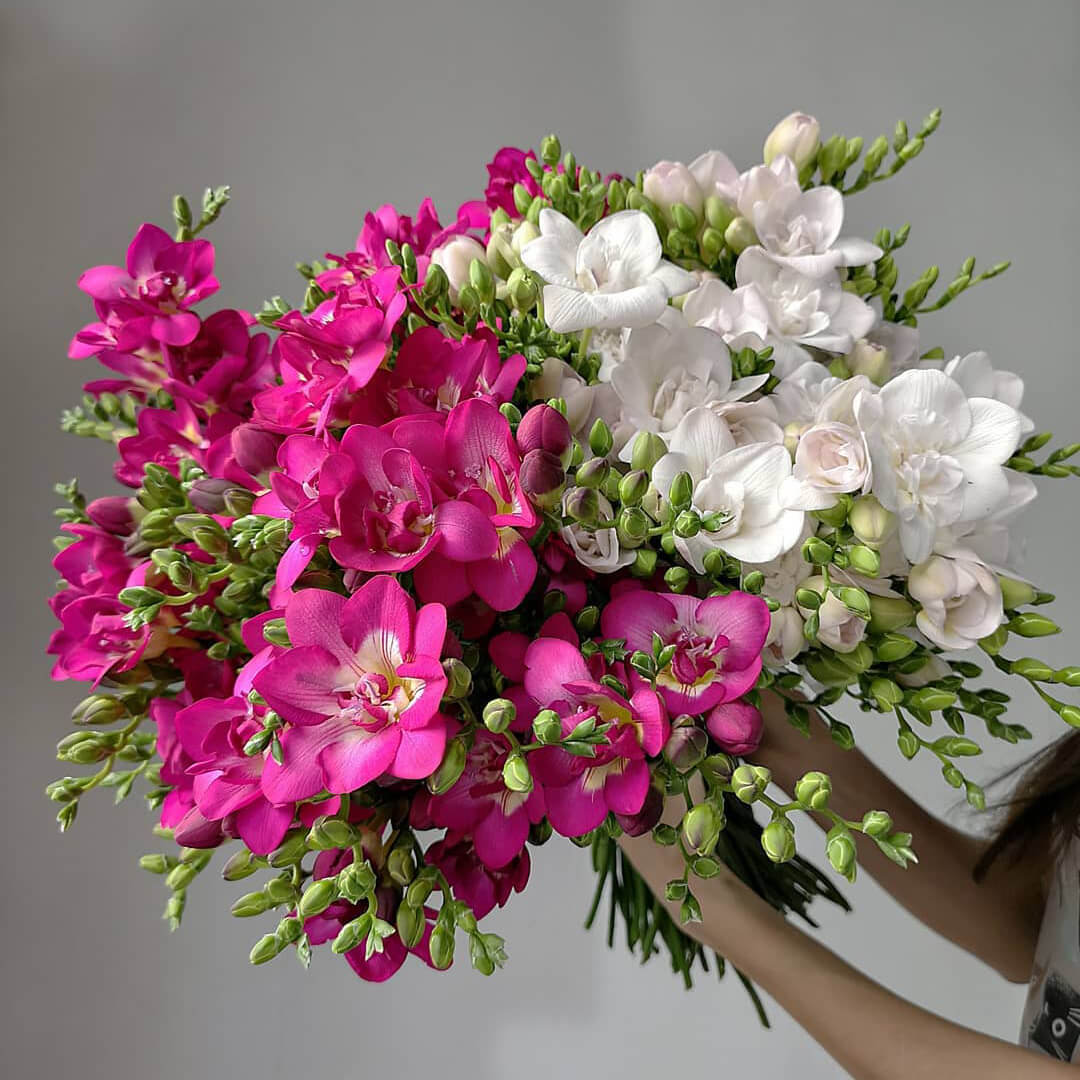 Неклассический букет из необычных цветов! Цветы фрезии очень нежные, хрупкие и милые. Передайте свои самые искренние чувства при помощи этого букета.