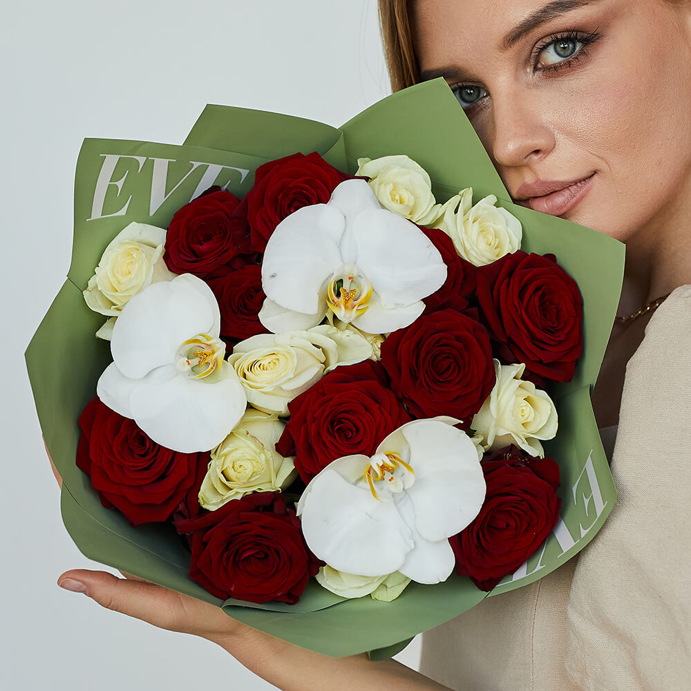 • 15 роз, орхидеи