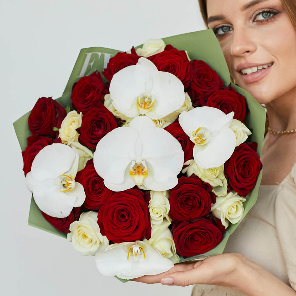 • 25 роз, орхидеи