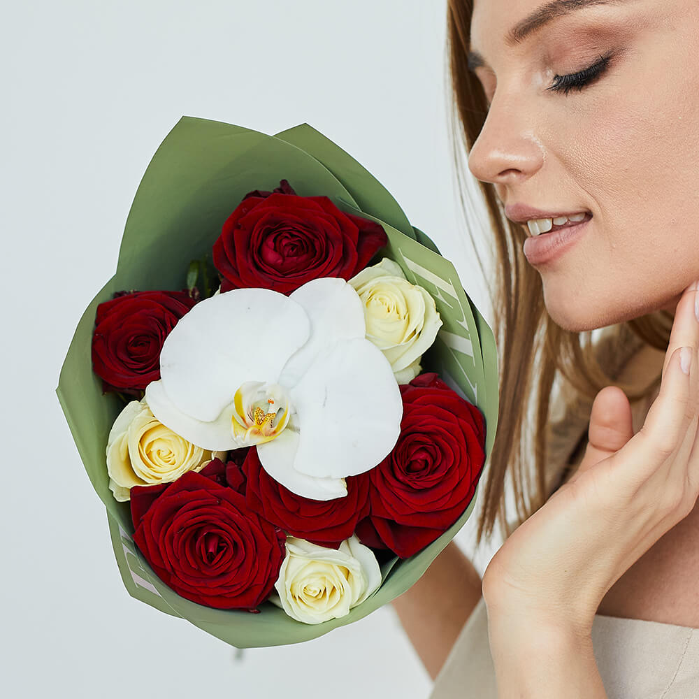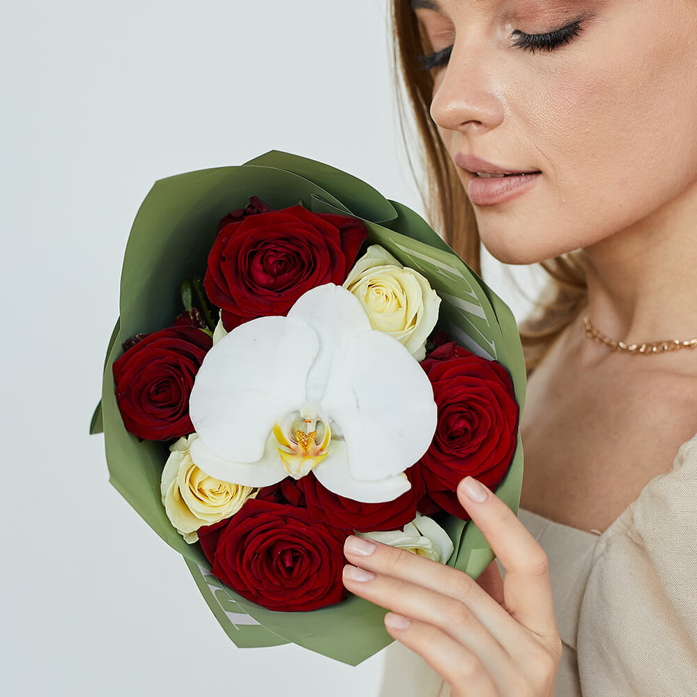 • 9 роз, орхидеи