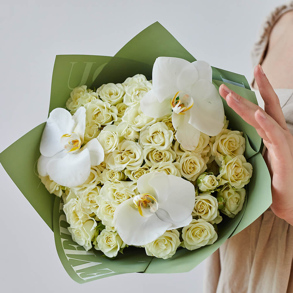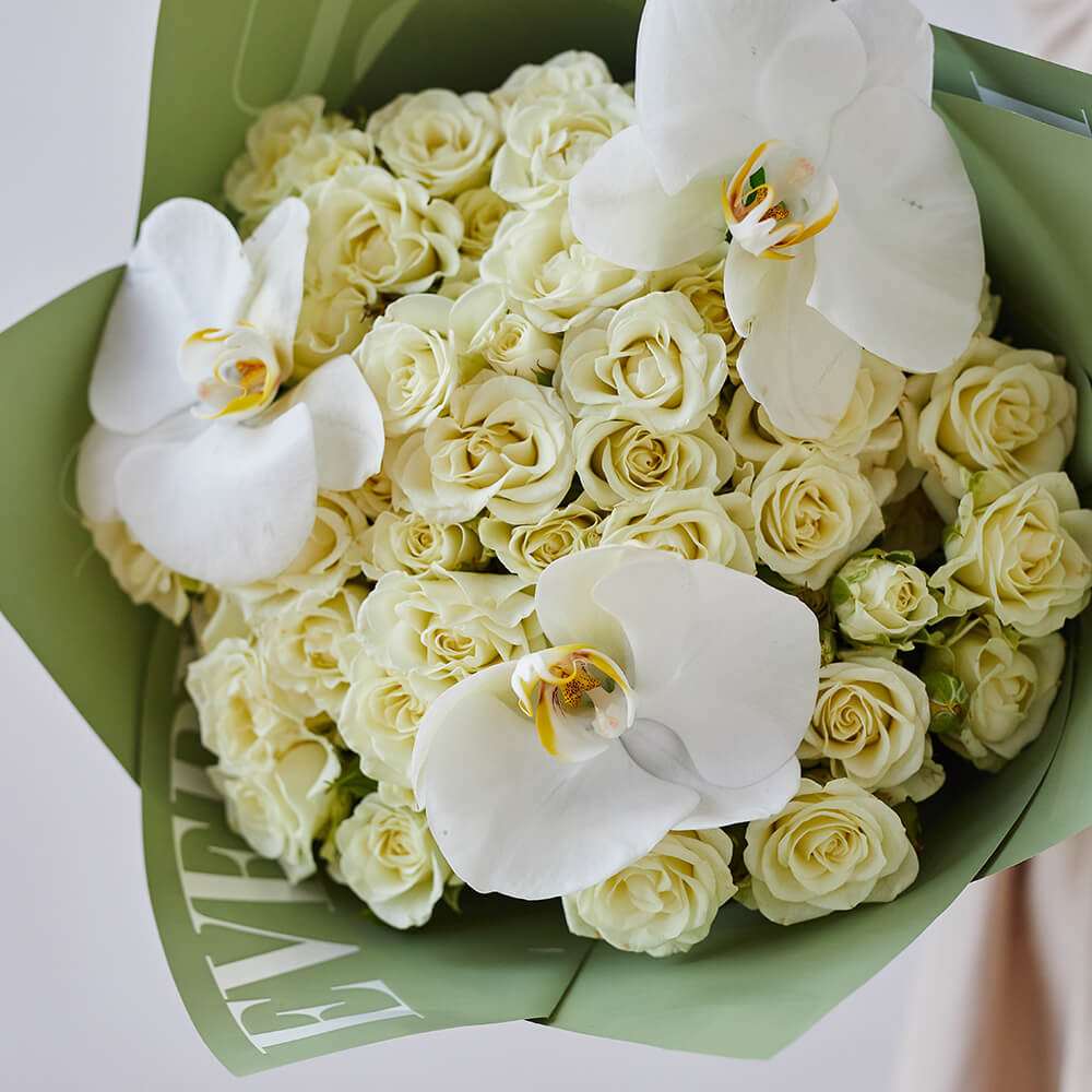 • 15 кустовых роз, орхидеи
