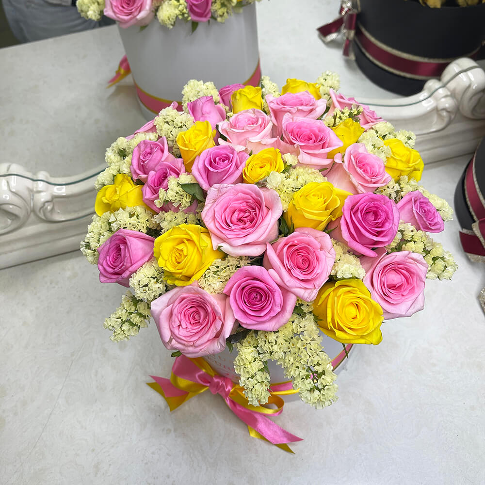 Пышный и Яркий букет из роз в коробке. Эксклюзивная композиция для вашей любимой. Необыкновенное сочетание цветов! Подарите чудо, подарите мечту!