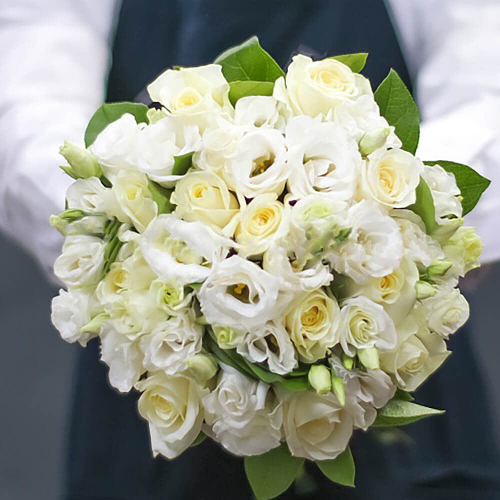 • 10 эустом, 13 роз