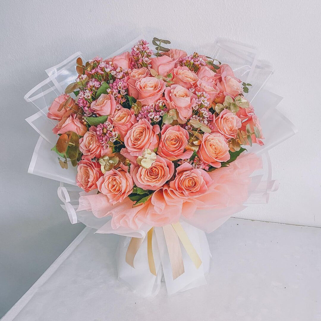 • 19 роз, эвкалипт, хамелациум