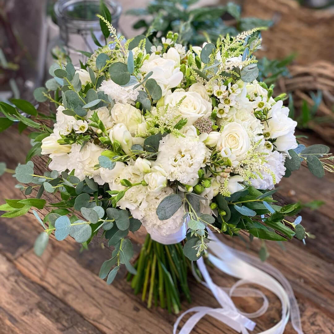 • 10 роз, 10 веток эвкалипта, 9 эустом