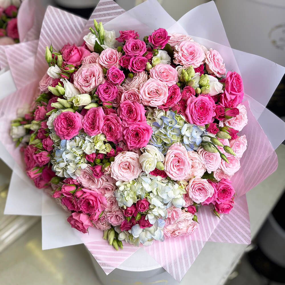 Сочетание розовых кустовых роз - это невероятная нежность, такой букет можно дарить только самым родным и близким тебе людям.
