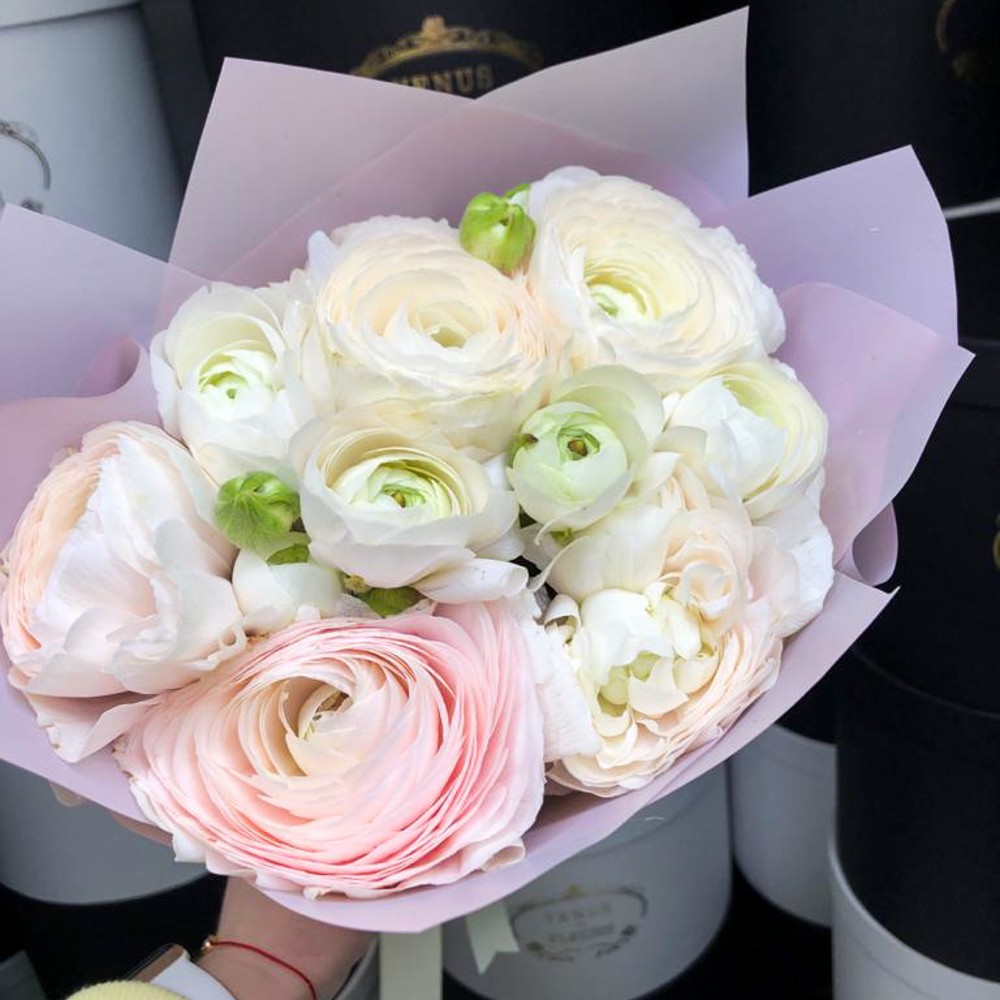 Это необычные цветы, что-то между пионовидными розами и пионами. Ранункулюсы - альтернативное название - Итальянские лютики. Простоят от 7 до 14 дней.