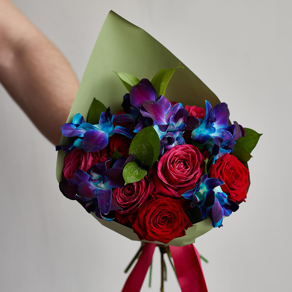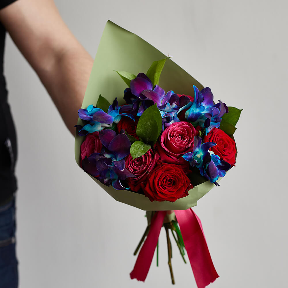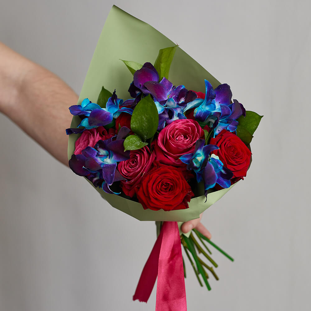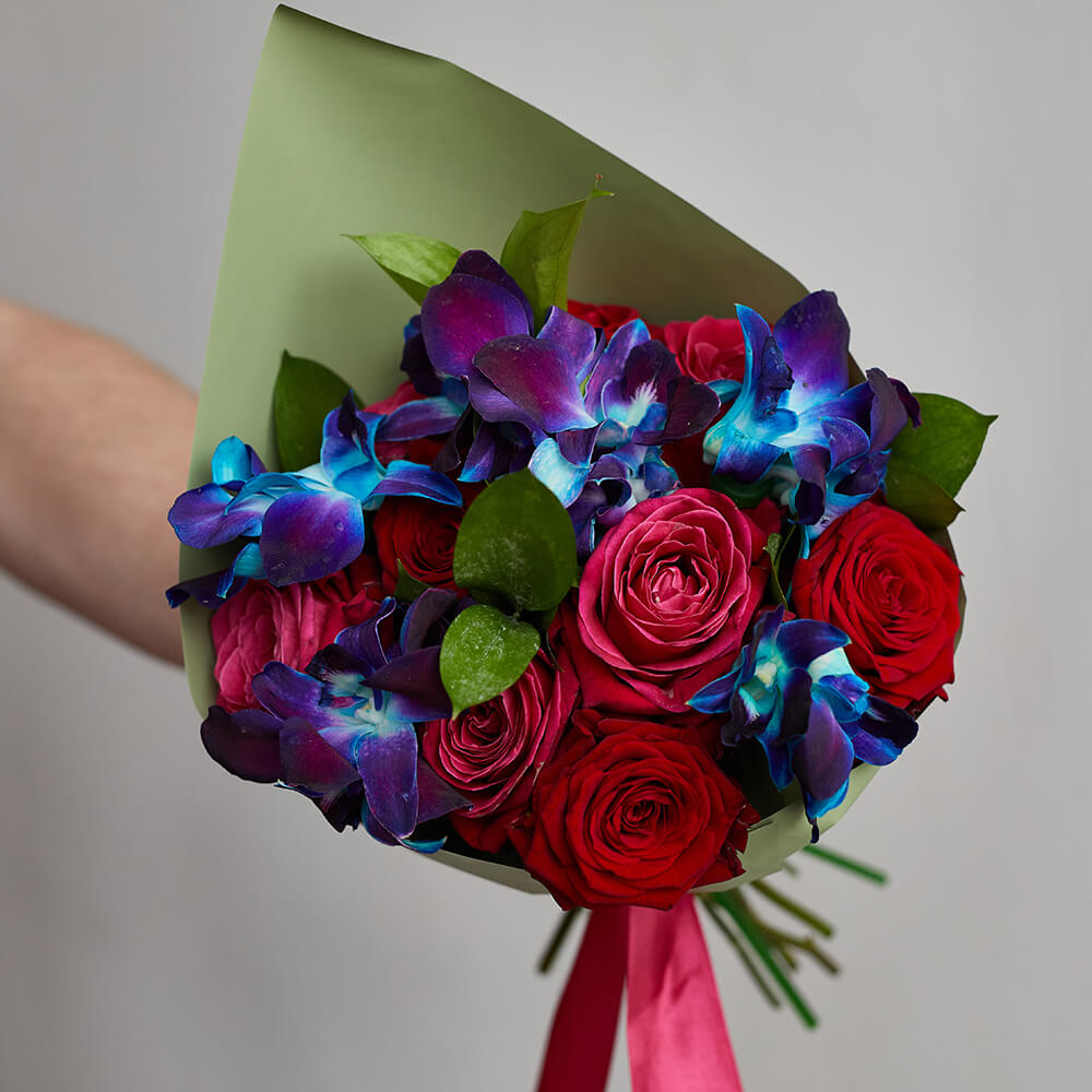 • 9 роз, 10 орхидей дендробиум, салал