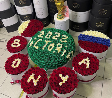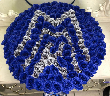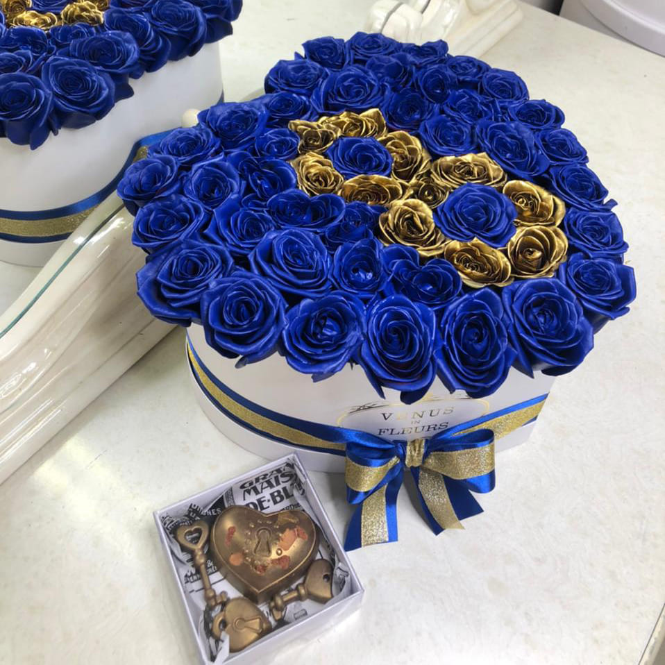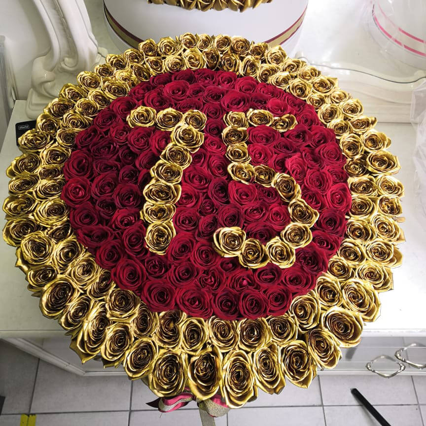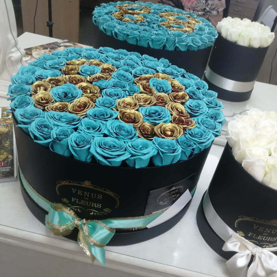 - розы, гвоздики, гипсофила, тонированные безопасными красителями без запаха в золотые, серебряные, голубые, черные, синие оттенки;