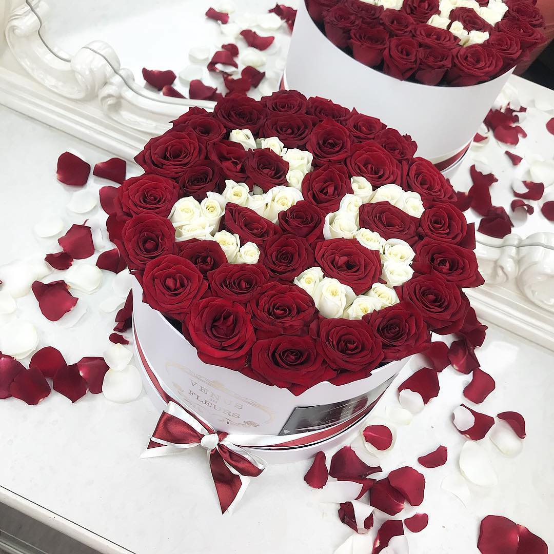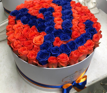 - оригинальные цветочные композиции со словом или символом, выложенным контрастными бутонами;