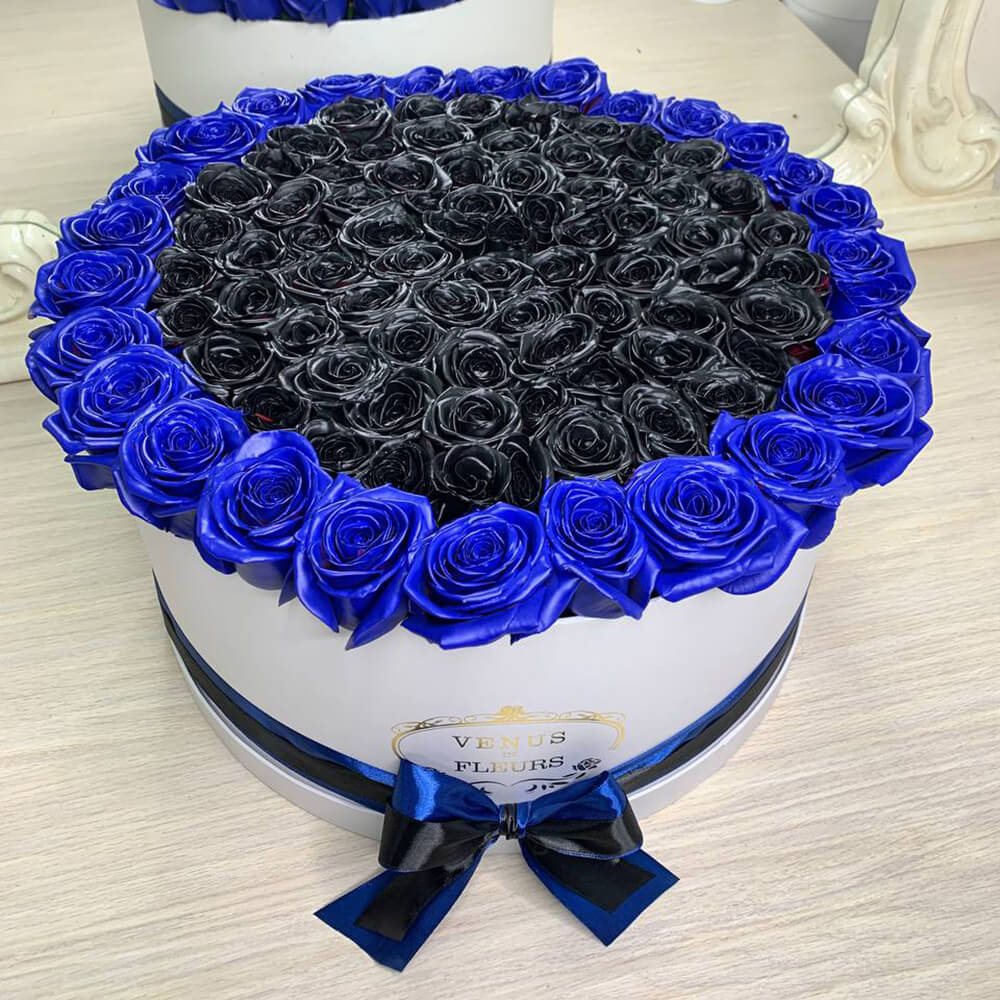 Уникальная композиция из черных и синих роз.