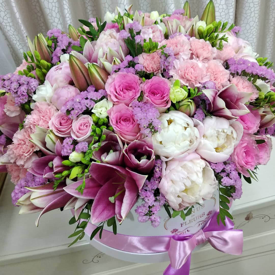 Цветы в шляпной коробке всегда останутся классикой и альтернативой букетам.