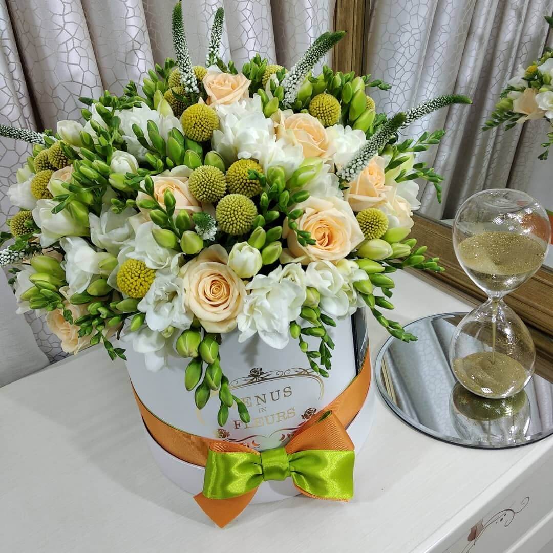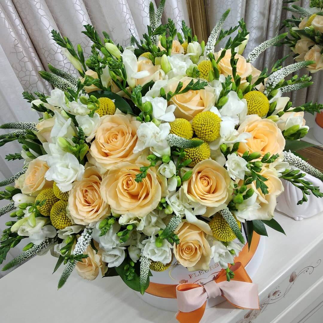 Букеты в шляпной коробке навсегда останутся классикой и альтернативой другим букетам.
