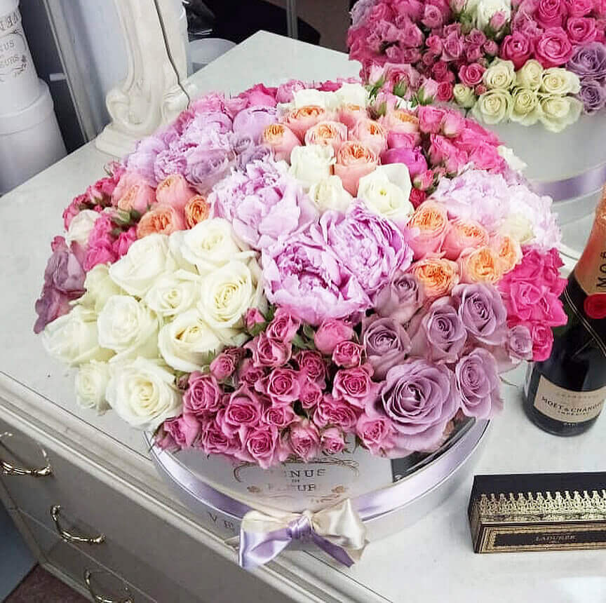 • 10 пионов, 20 пионовидных роз, 51 роза, 20 кустовых роз