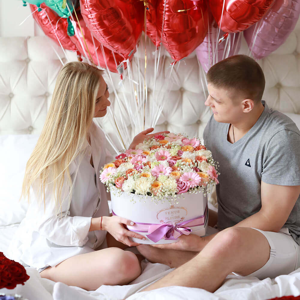 Цветы в шляпной коробке всегда останутся классикой и альтернативой букетам.