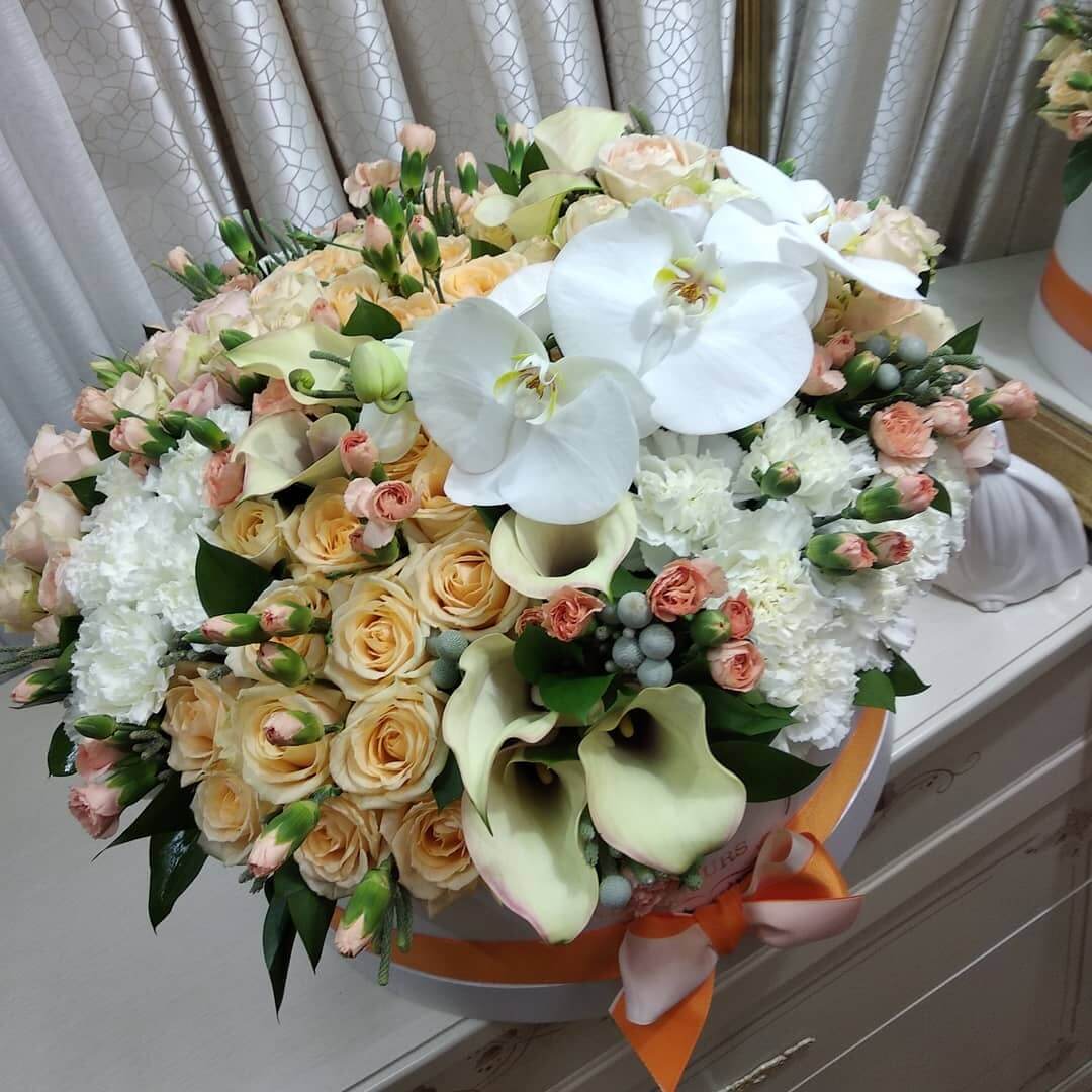 Букеты в шляпной коробке навсегда останутся классикой и альтернативой другим букетам.