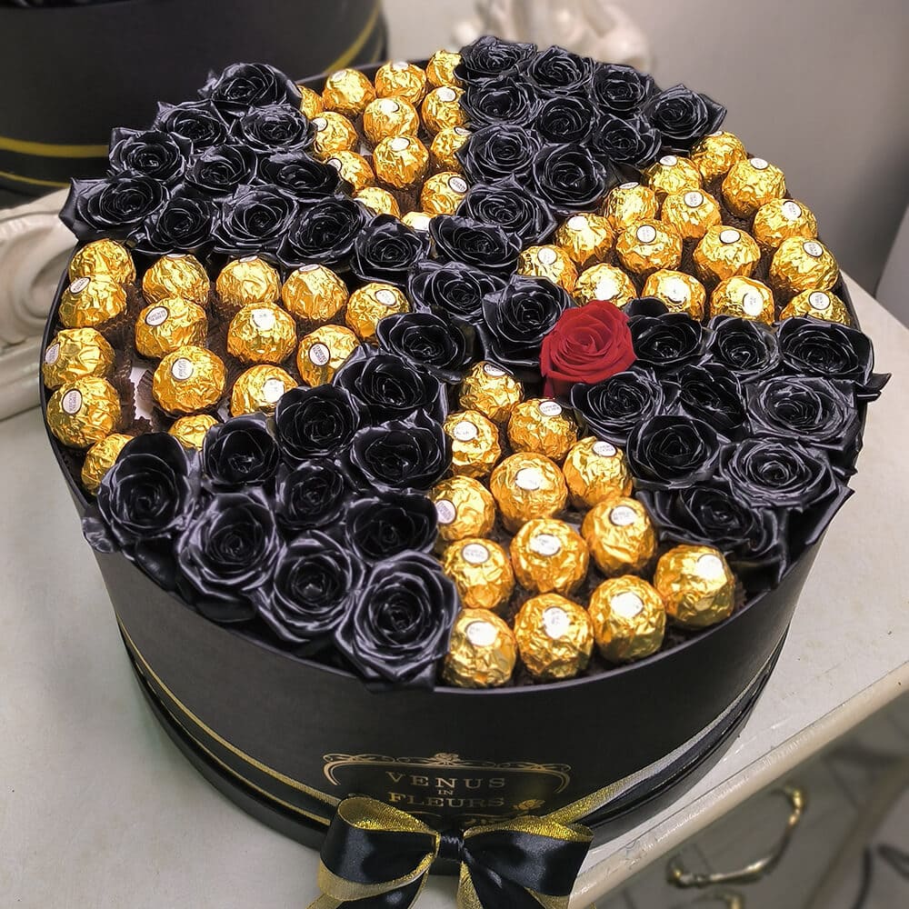 Подсластите жизнь своим любимым и сделайте подарок из вкуснейших конфет и нежных роз в коробке в форме сердца. Ваша любимая удивиться подаренному чуду, с удовольствием полакомится вкусным шоколадом. Аналогов такого букета нет.