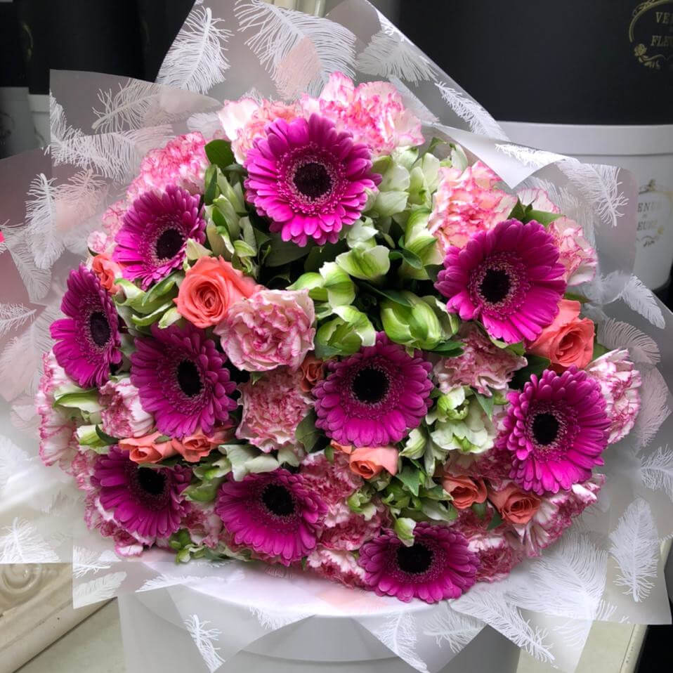 • 10 гербер, 10 альстромерий, 20 гвоздик, 11роз