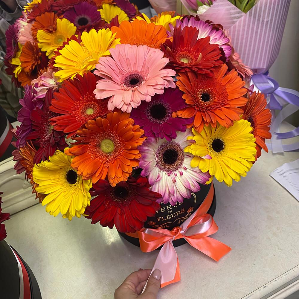 Это необычное сочетание гербер является эксклюзивным за всю историю флористики. Яркие разноцветные цветы, собранные в один букет , подарят только яркие положительные эмоции. Ваша вторая половинка будет в восторге, увидев такое чудо в живую.
