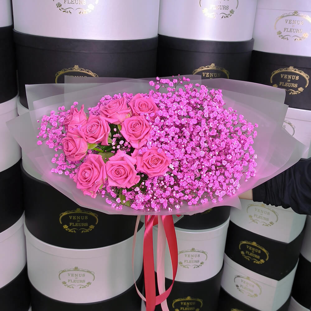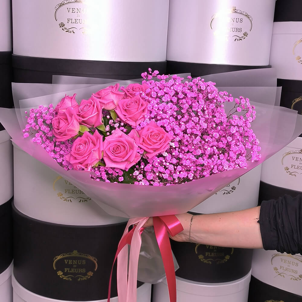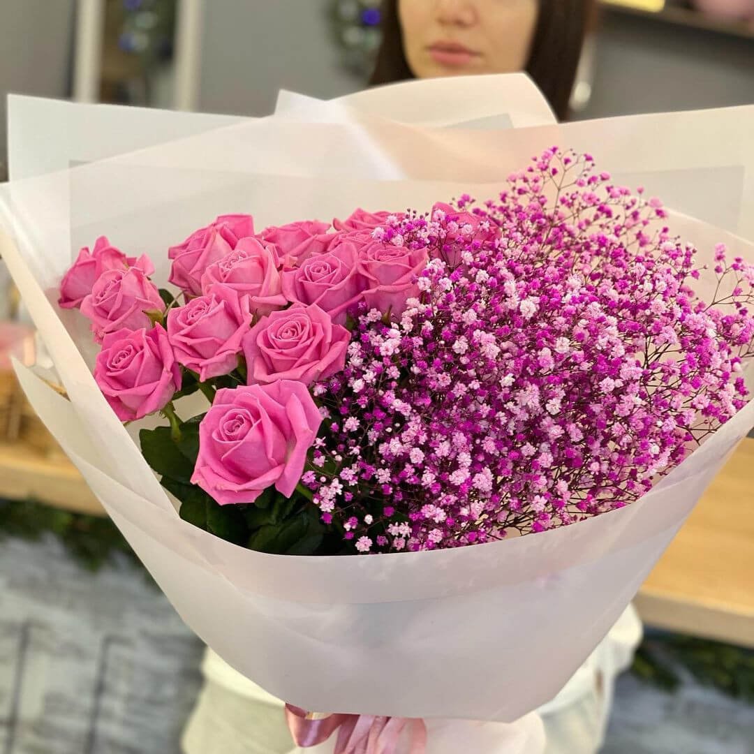 • 10 гипсофил, 15 роз