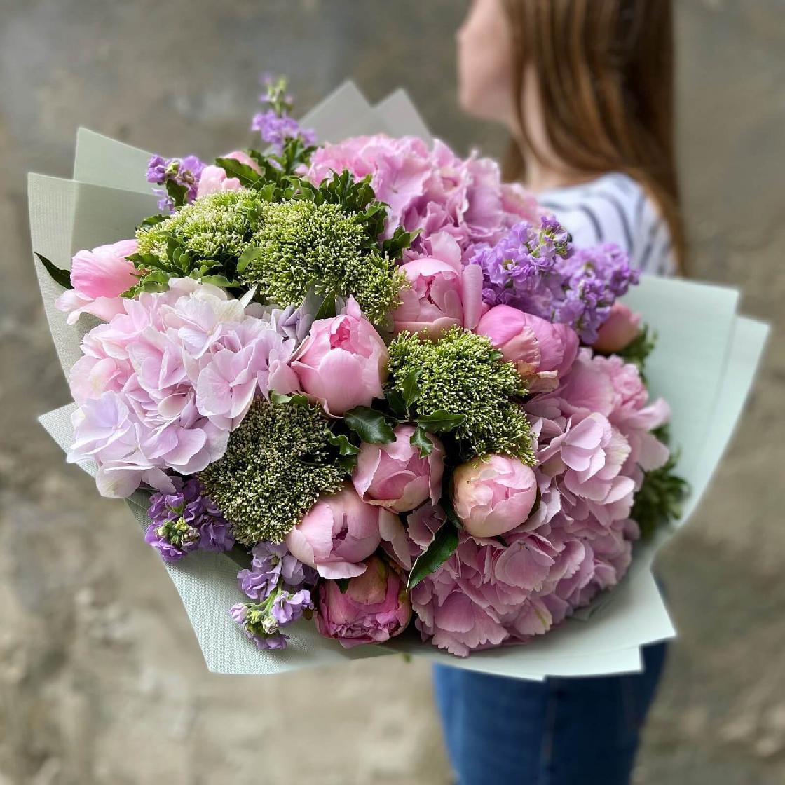 • 3 гортензии, 10 пионов, 6 маттиол, трахелиум