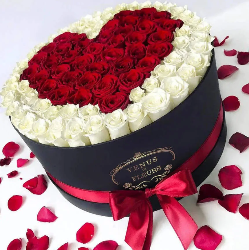 Это не миллион алых роз, но для Дня всех влюбленных — прекрасный подарок. Цветы подобраны один к одному, в белой коробке ручной работы кажутся огненными всполохами. Такое же пламя горит в вашем сердце, когда вы думаете о любимой девушке.