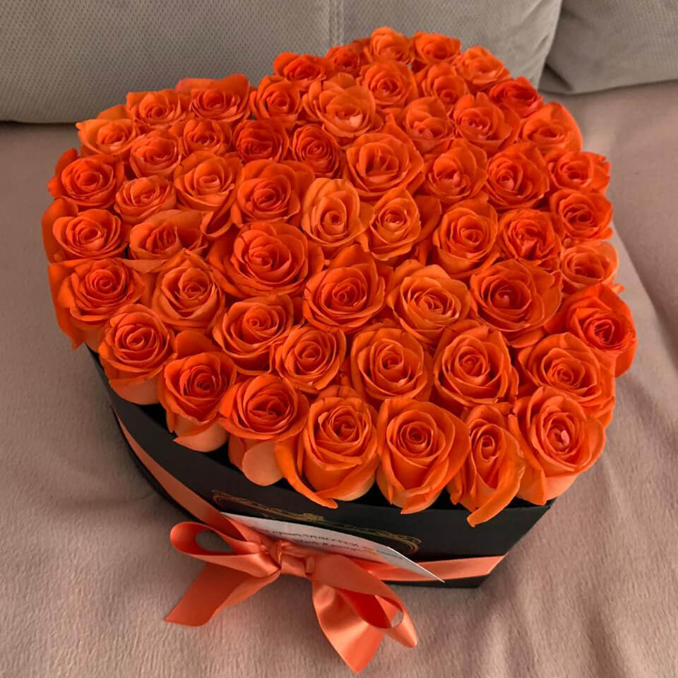 Удивительные яркие коралловые розы станут лучшим подарком на любое торжество.