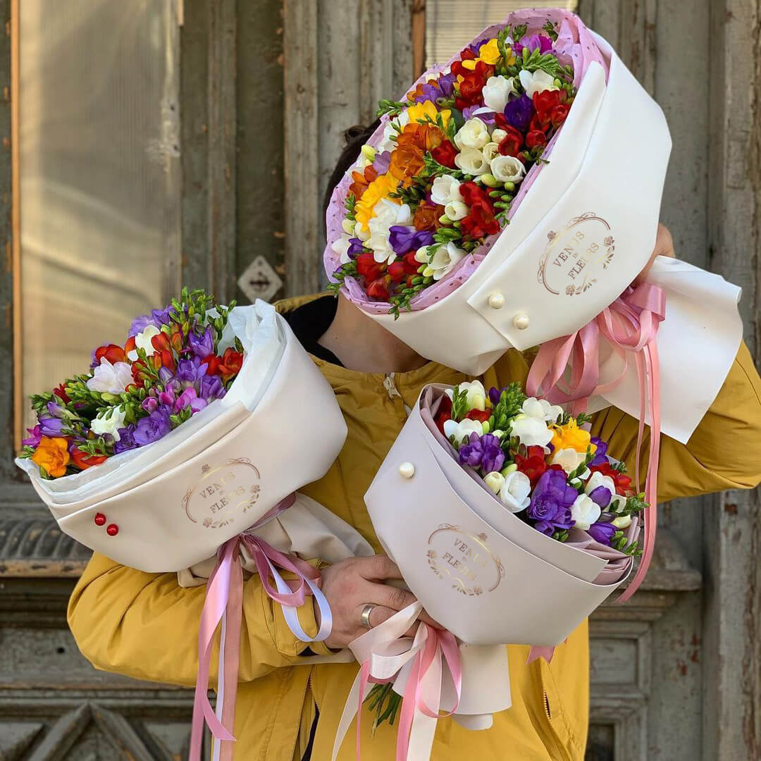 Неклассический букет из необычных цветов! Цветы фрезии очень нежные, хрупкие и милые. Передайте свои самые искренние чувства при помощи этого букета.