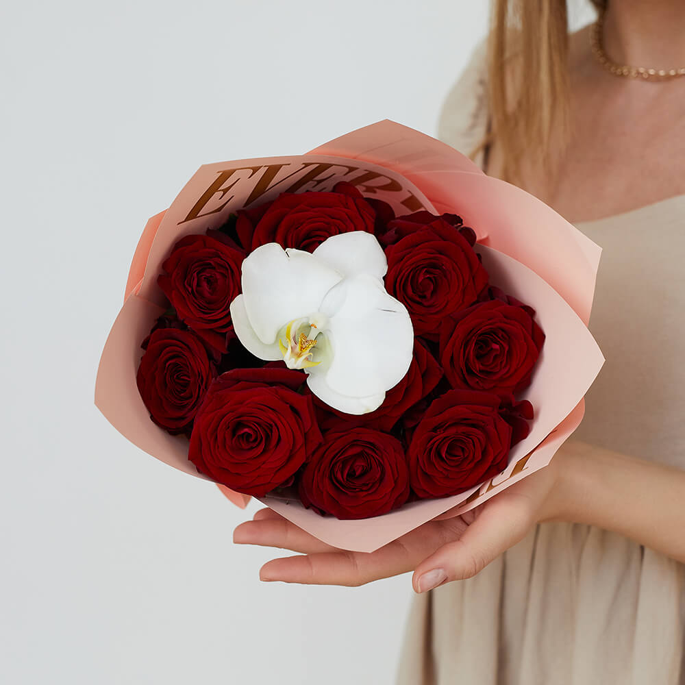 • 11 роз, орхидеи