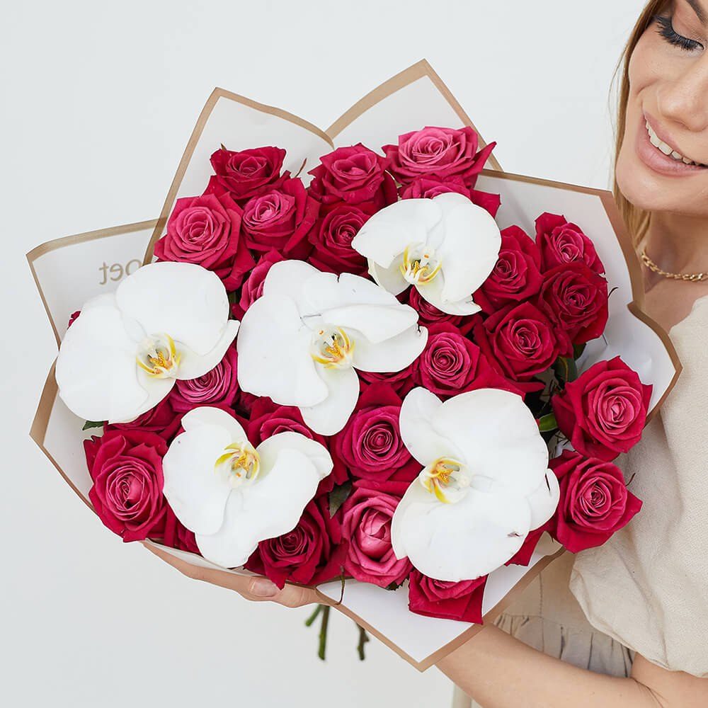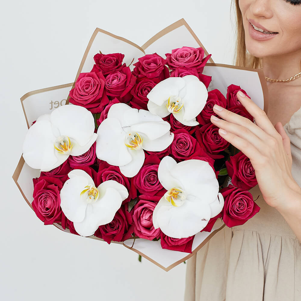 • 29 роз, орхидеи